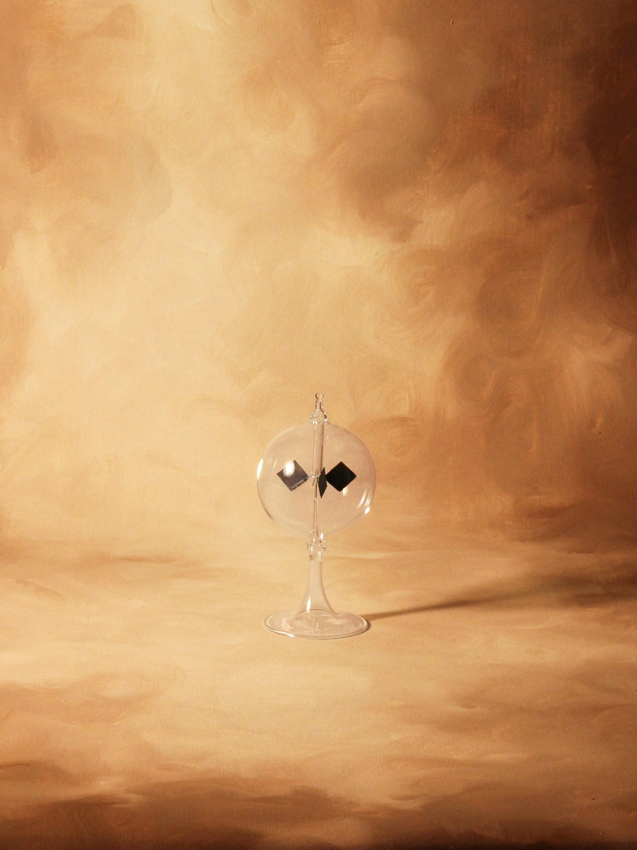 Un misterioso objeto que gira con la luz. El radiómetro fue inventado en la década de 1870 por el físico británico William Crookes como un instrumento de laboratorio que convierte la energía luminosa en energía cinética. Tiene una estructura simple en la que un impulsor negro con alas, que está dentro del vidrio, gira cuando se expone a la luz, incluidos los rayos infrarrojos.