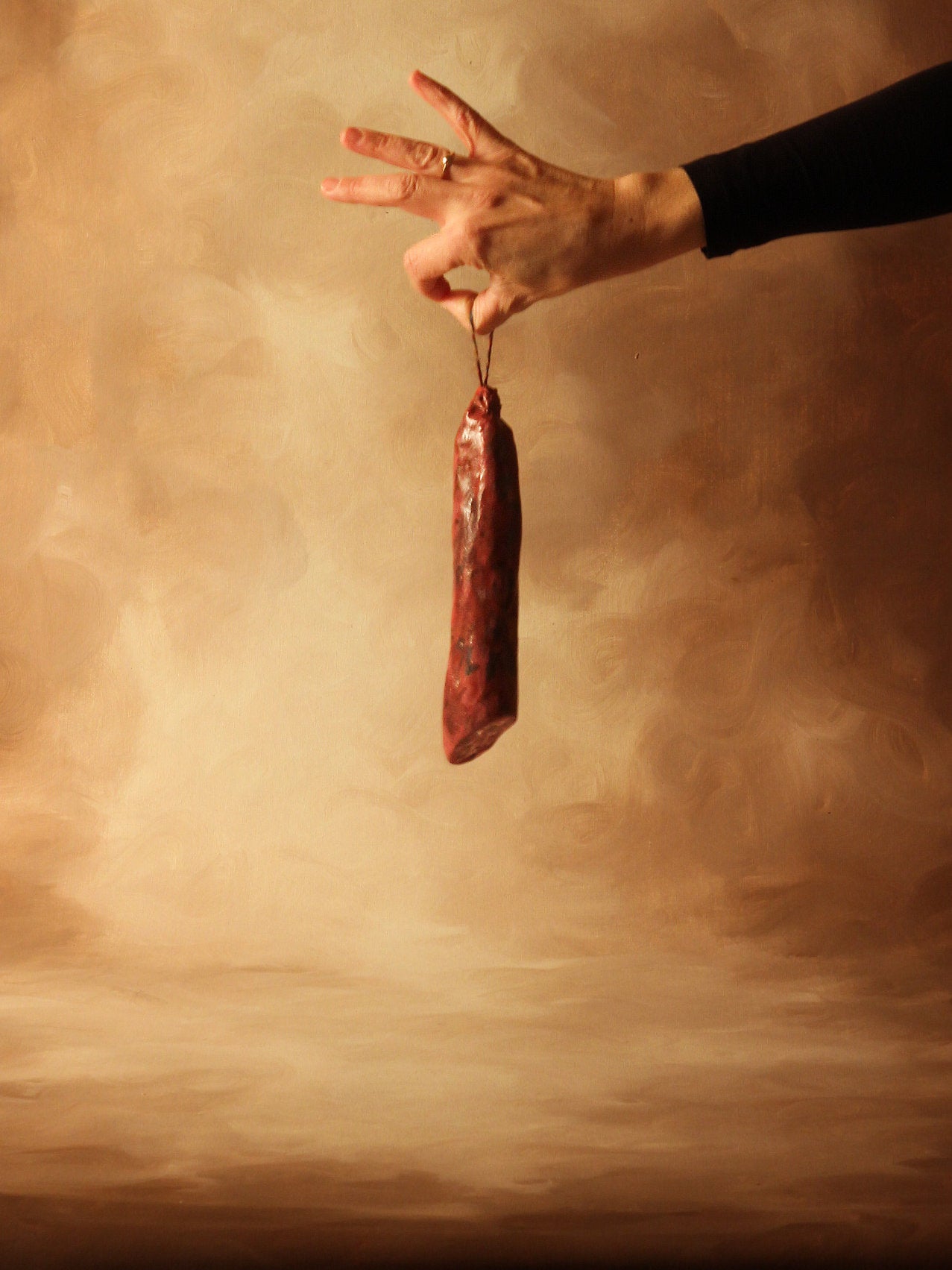 Salchichón de cerámica con su cuerda. Debido a su elaboración manual cada pieza tiene particularidades únicas.